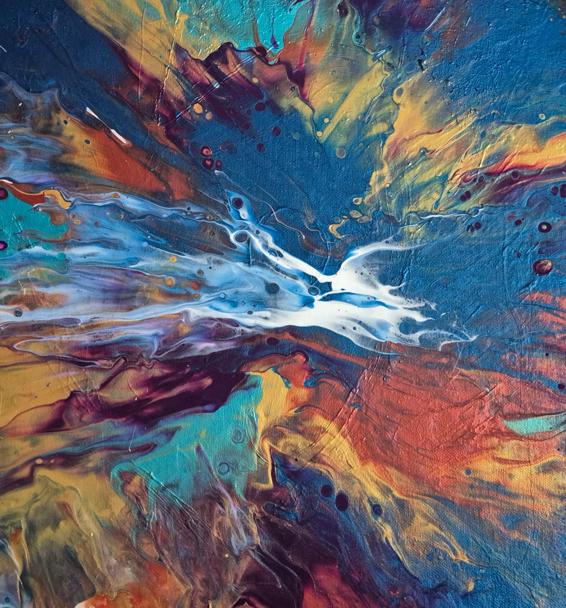 Grâce à la technique fascinante du pouring, ou peinture acrylique versée, chaque tableau que je crée est absolument unique et inimitable. C'est l'essence même de Feu d'Art : offrir des pièces où l'imagination et la rêverie peuvent s'épanouir, sans jamais deux fois la même composition. Mes toiles sont de véritables feux d'artifice de couleurs éclatantes.
